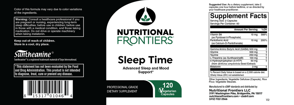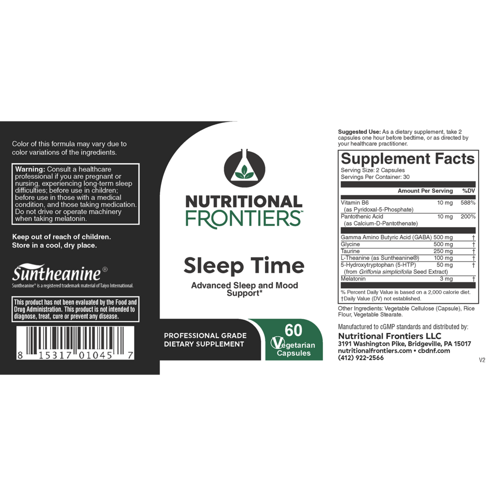 The Sleep Time formulation, to be taken 1 hour before bed, is designed to promote restful sleep and may help the body to deal with occasional stress* Sleep Time was formulated to help support the neurotransmitters dopamine and serotonin, which have a role with sleep cycles.*