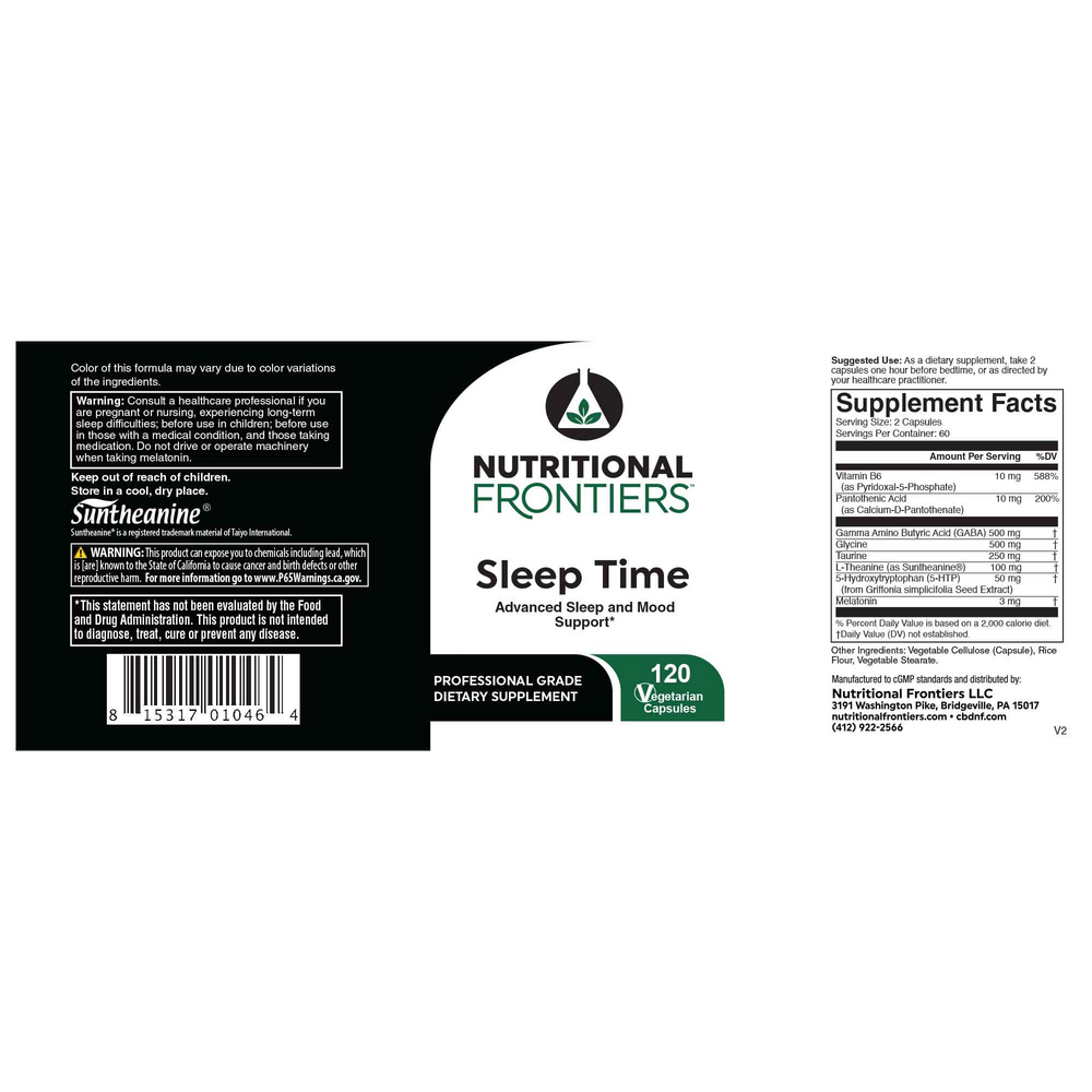 The Sleep Time formulation, to be taken 1 hour before bed, is designed to promote restful sleep and may help the body to deal with occasional stress* Sleep Time was formulated to help support the neurotransmitters dopamine and serotonin, which have a role with sleep cycles.*