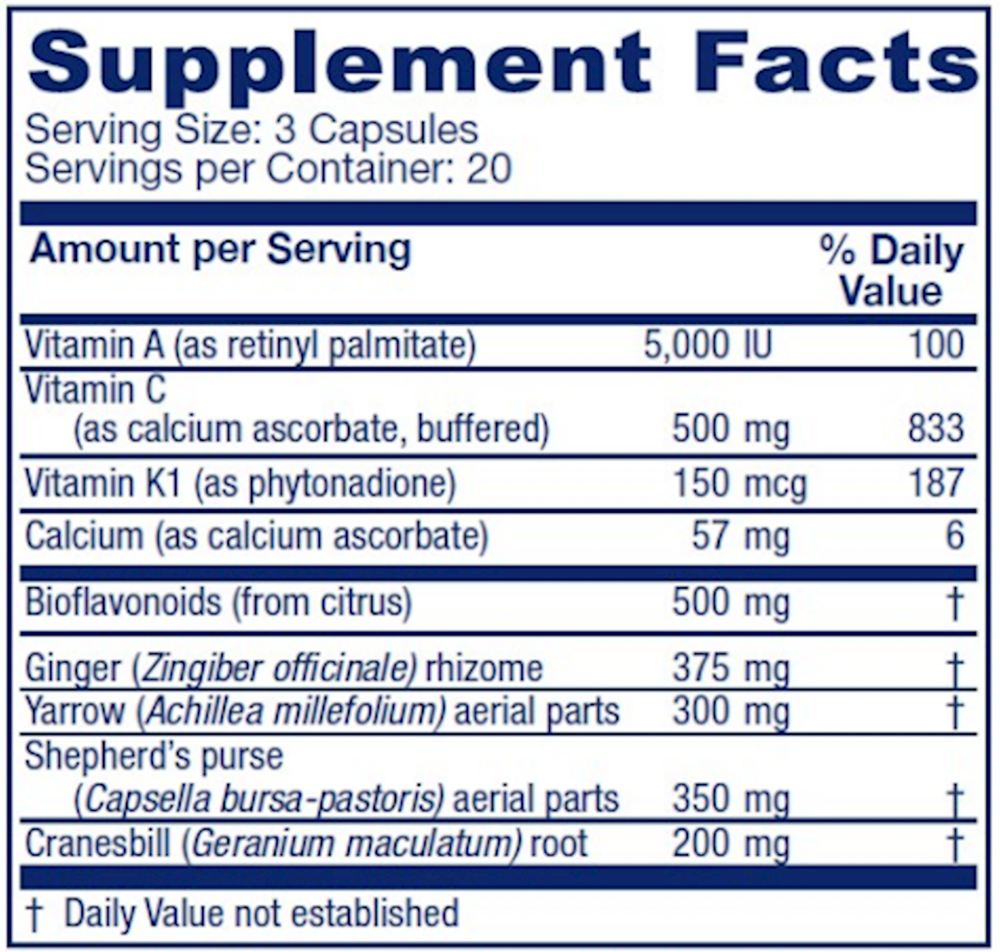 • Vitamin A, Vitamin C and Bioflavonoids have shown in research to support normal healthy menstrual flow*