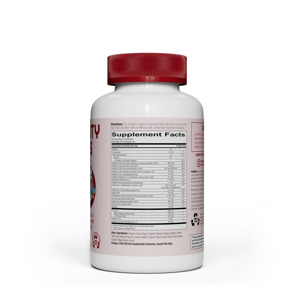 Suggested Use: For children 3 years of age and older, take four (4) gummies daily. May be taken with or without food. Chew each gummy thoroughly.