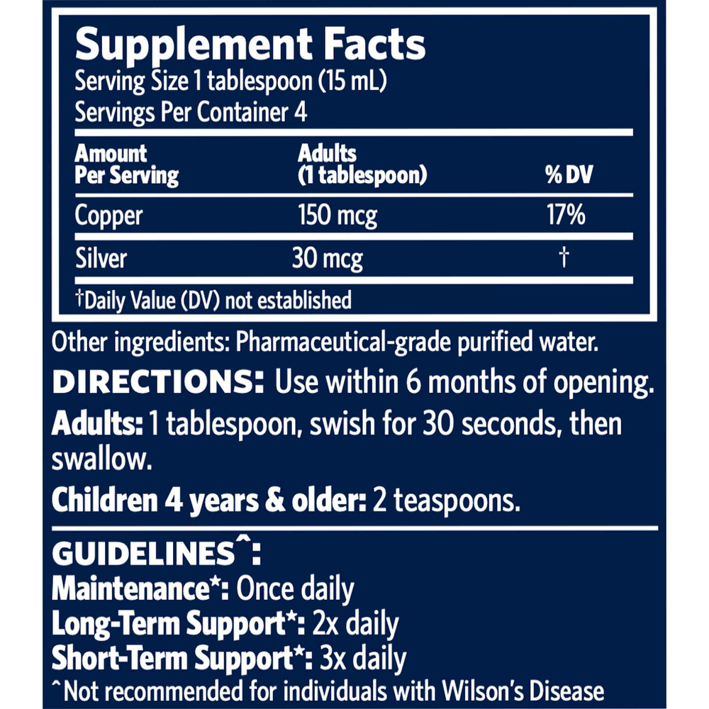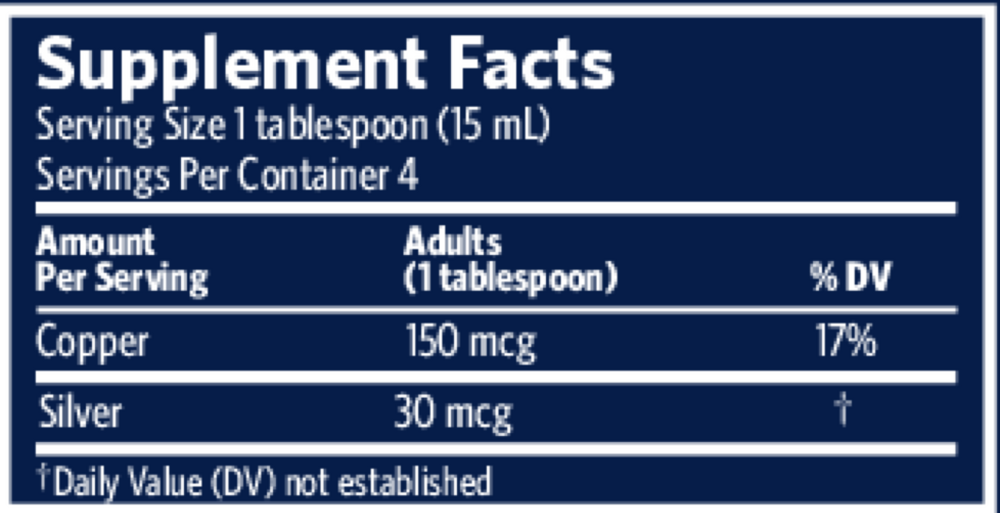 99.999% pure copper, pharmaceutical grade water and a hint of silver delivering two forms of copper (I) and (II).