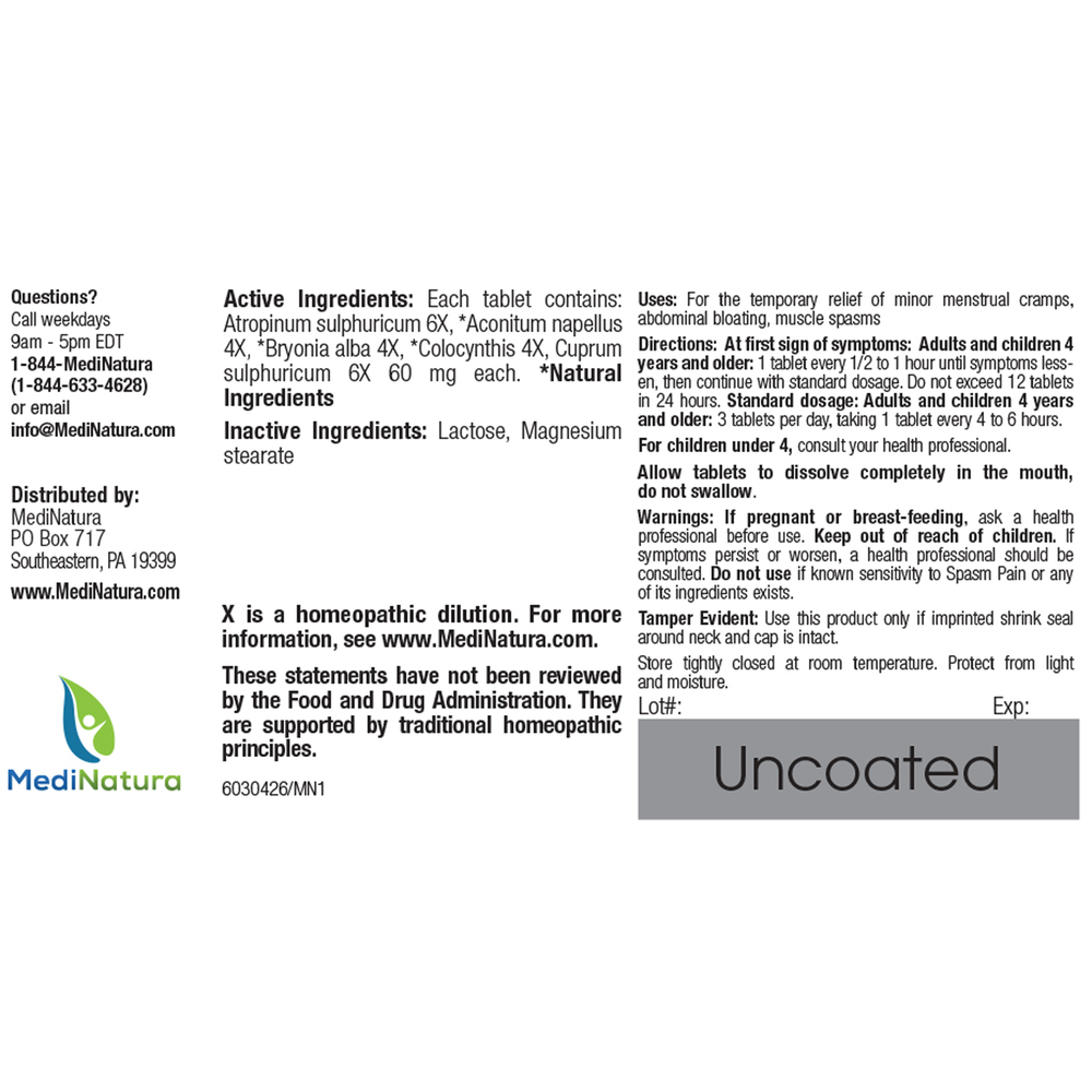 Homeopathic. Natural spasm and cramp relief – BHI Spasm Pain tablets relieve discomfort from menstrual cramps, abdominal bloating and muscle spasms.†