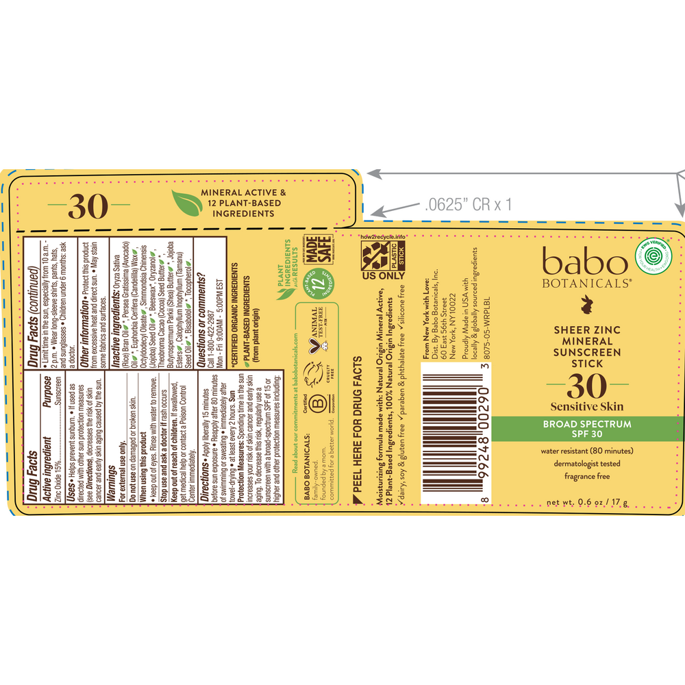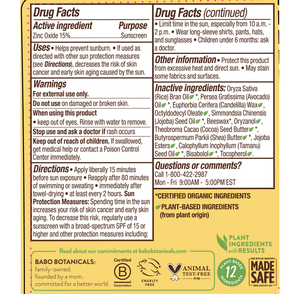 Babo's broad spectrum UVA/UVB zinc sunscreen stick is great for the face, lips, nose, ears and anywhere with extra sensitive skin. The fragrance-free sunscreen stick goes on clear, is non-greasy and rubs in well. Babo's hypoallergenic formula contains the power-packed protection of Zinc, plus rich, skin-soothing certified organic oils, including Jojoba.