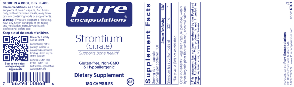 In a preliminary analysis of a three-year placebo-controlled, double-blind study of 5,091 postmenopausal women, strontium supplementation promoted healthy hip bones. Since strontium is absorbed using calcium transport mechanisms, strontium supplements should not be taken at the same time as calcium supplements or calcium containing foods. While supplementing with strontium, adequate calcium intake should be maintained.*