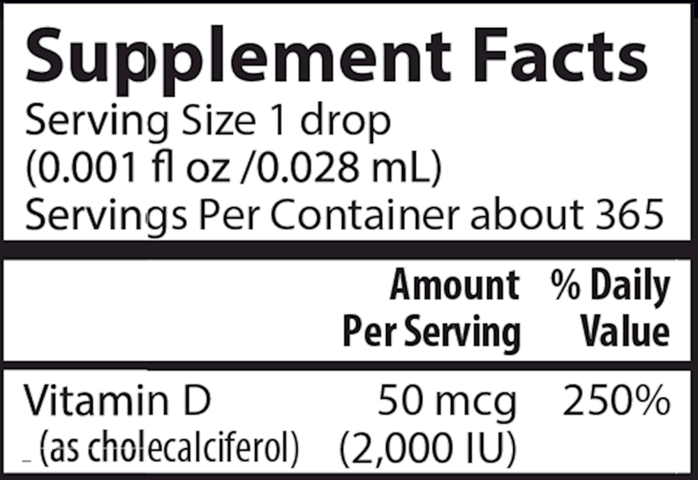 • 2,000 IU (50 mcg) of concentrated vitamin D3 in every drop