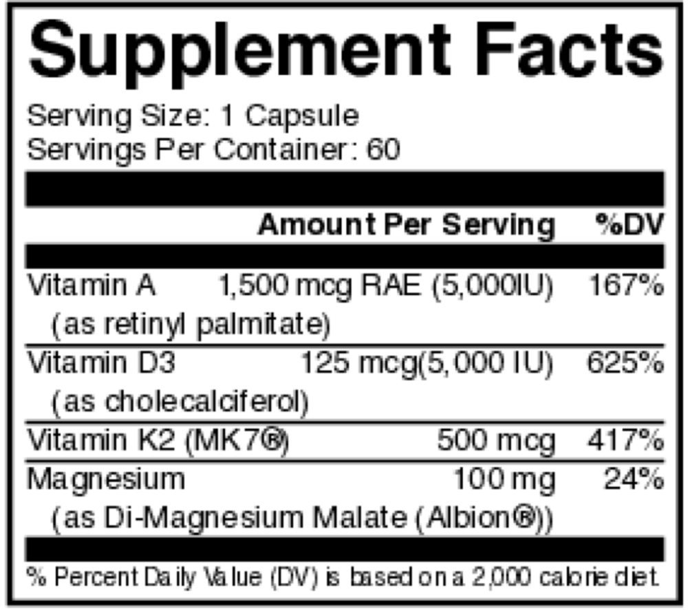 A Dietary Supplement with Vitamins A, D, and K2 (as VitaMK-7®).