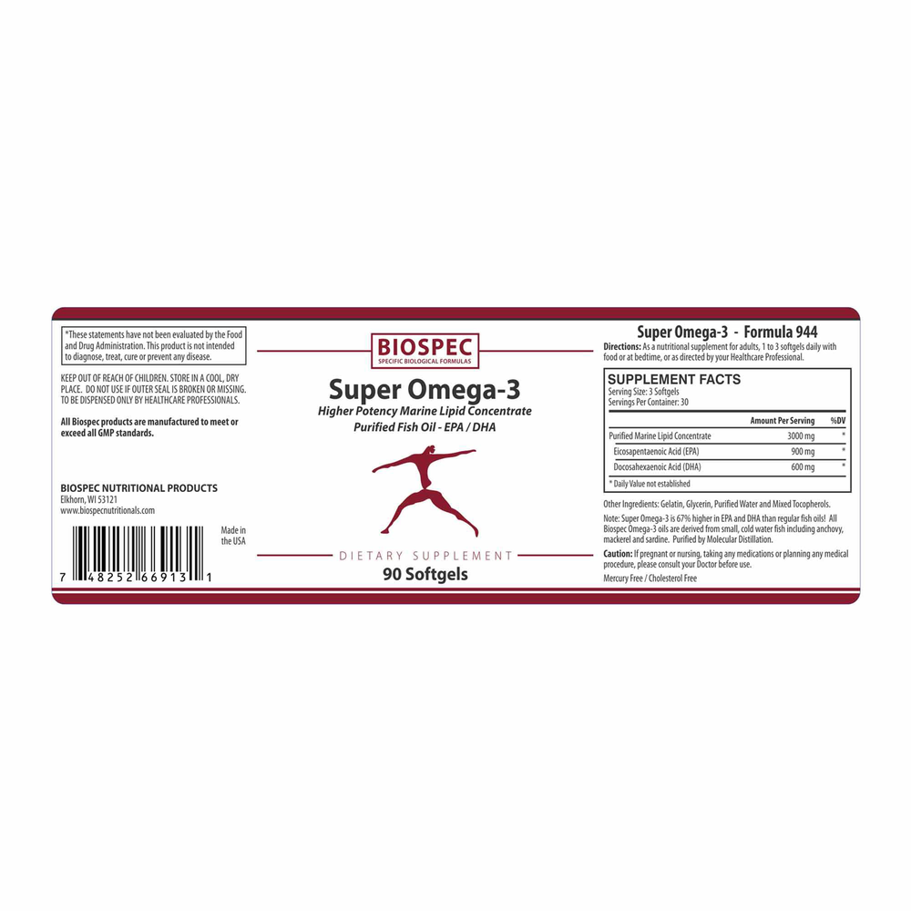 Super Omega-3 provides a higher concentration of the all important EPA/DHA fraction so that clinically significant levels can be achieved with fewer softgels.