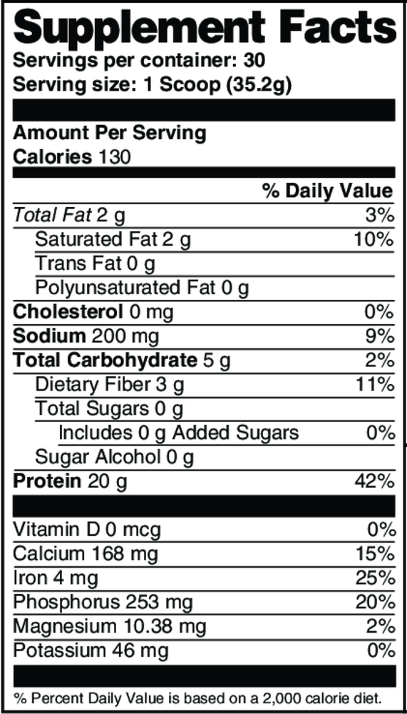 A hypoallergenic, vegetarian, low carbohydrate meal replacement powder suitable for those with food allergies and food sensitivities.