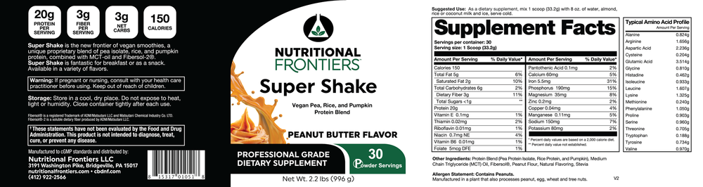 Super Shake features pea, rice, and pumpkin as its protein sources, providing a delicious alternative for people on a variety of food programs including weight management, detoxification, low carbohydrate, diabetes, food allergies, or those simply looking to add shakes to their daily routine. Super Shake can be mixed easily with water, coconut, rice or almond milk, and juice. Super Shake may be added to a blender with fresh or frozen fruit, coconut, rice or almond milk, ice, nut butter.