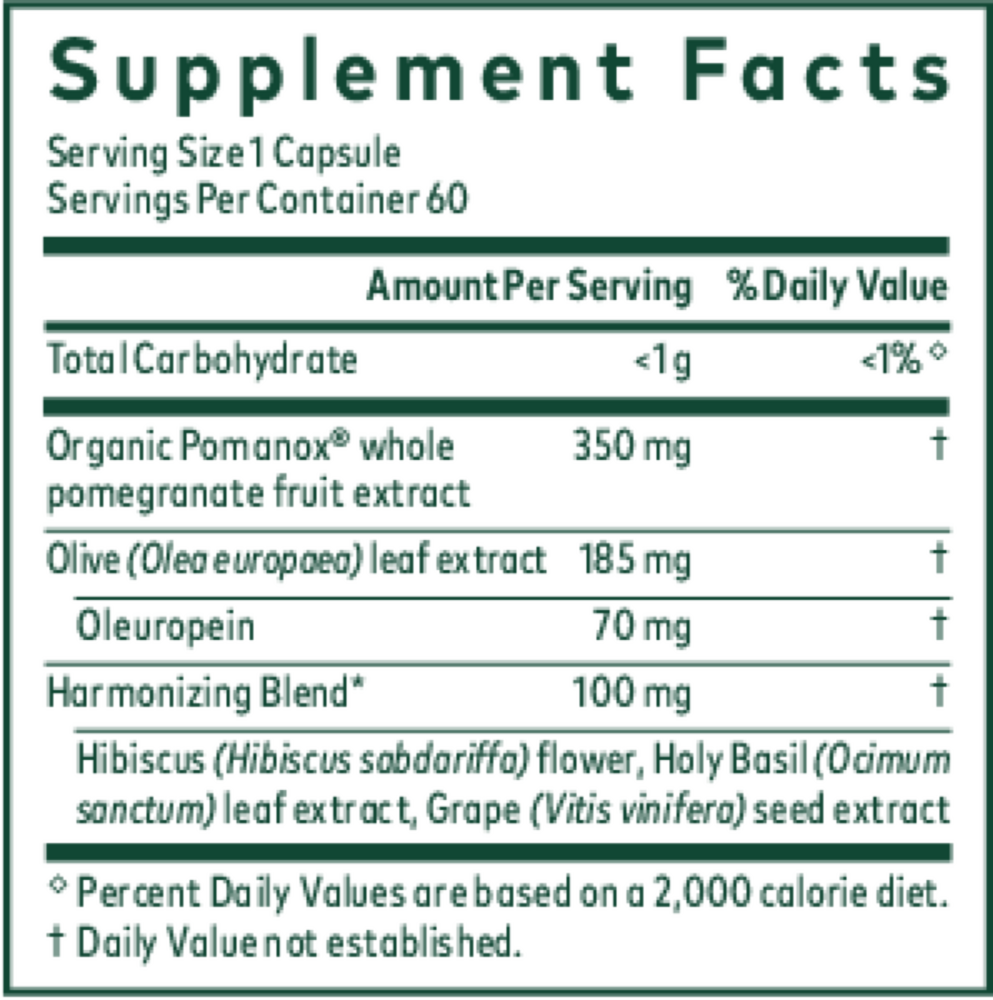 Systolic Complex contains a blend of clinically-studied Pomanox® Pomegranate and Olive leaf and is supported by Hibiscus and Holy Basil to maintain healthy blood pressure and promote overall cardiovascular health.*
