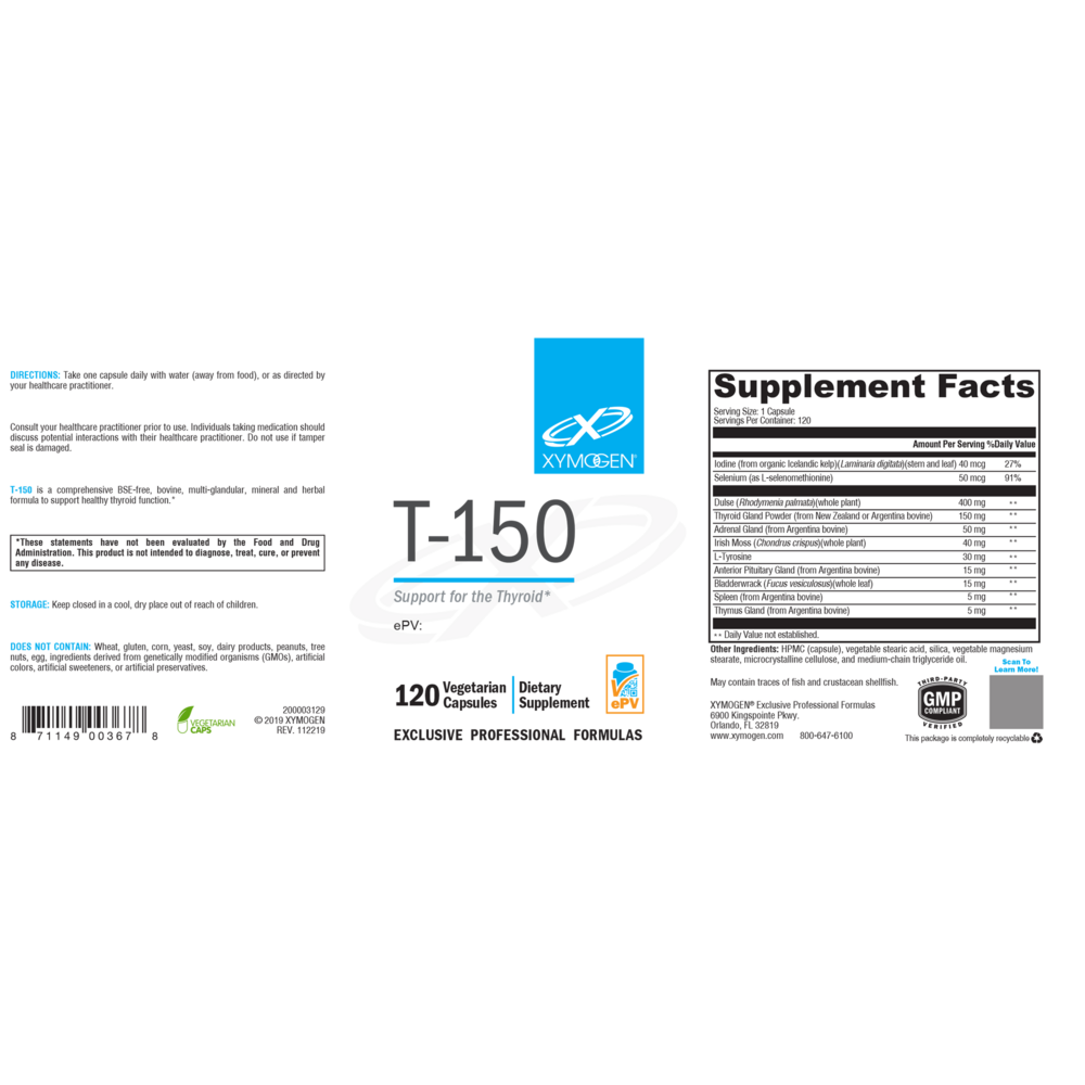 T-150 is a comprehensive BSE-free, bovine, multi-glandular, mineral and herbal formula to support healthy thyroid function.*