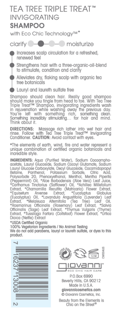 • Helps alleviate dry, flaking scalp with organic Tea Tree botanicals