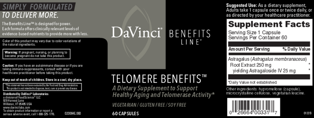 Telomere Benefits is a breakthrough product that features a standardized extract of Astragaloside IV (AG-IV). AG-IV supports the expression of the telomerase enzyme, which supports healthy DNA and telomere length, resulting in unparalleled aging support at the genetic level. *