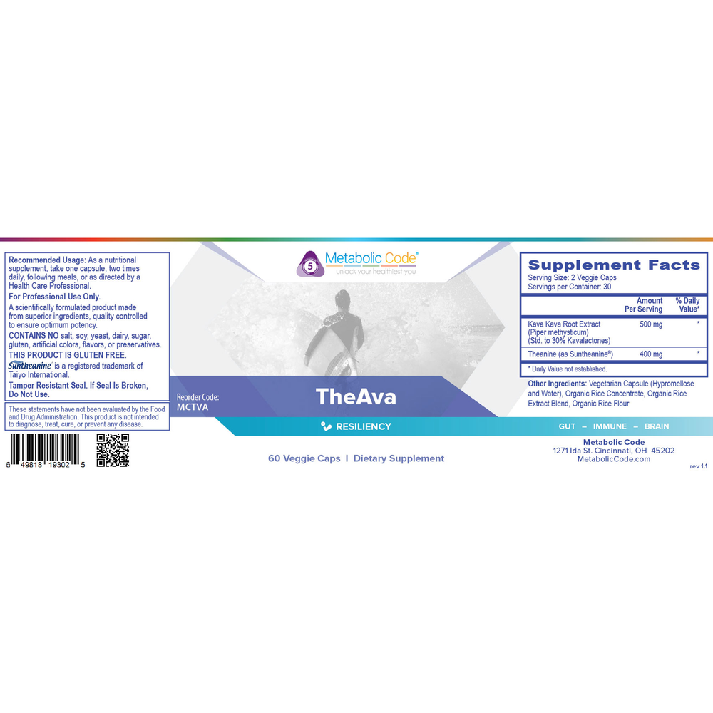 TheaVa is a novel combination of two important nutrients L-theanine (SuntheanineÒ) and Kava kava (Piper methysticum) root (std. 30% kavalactones). TheAva is typically used for brain/anxiety issues , including anxiety/nervousness with feelings of being overcommitted, anxious, and perseveration (uncontrolled repetitive thoughts or ideas – “stuck”). This is preferred with no food cravings, and significant feelings of anxiousness. Supports TRIAD 2 Brain issues.