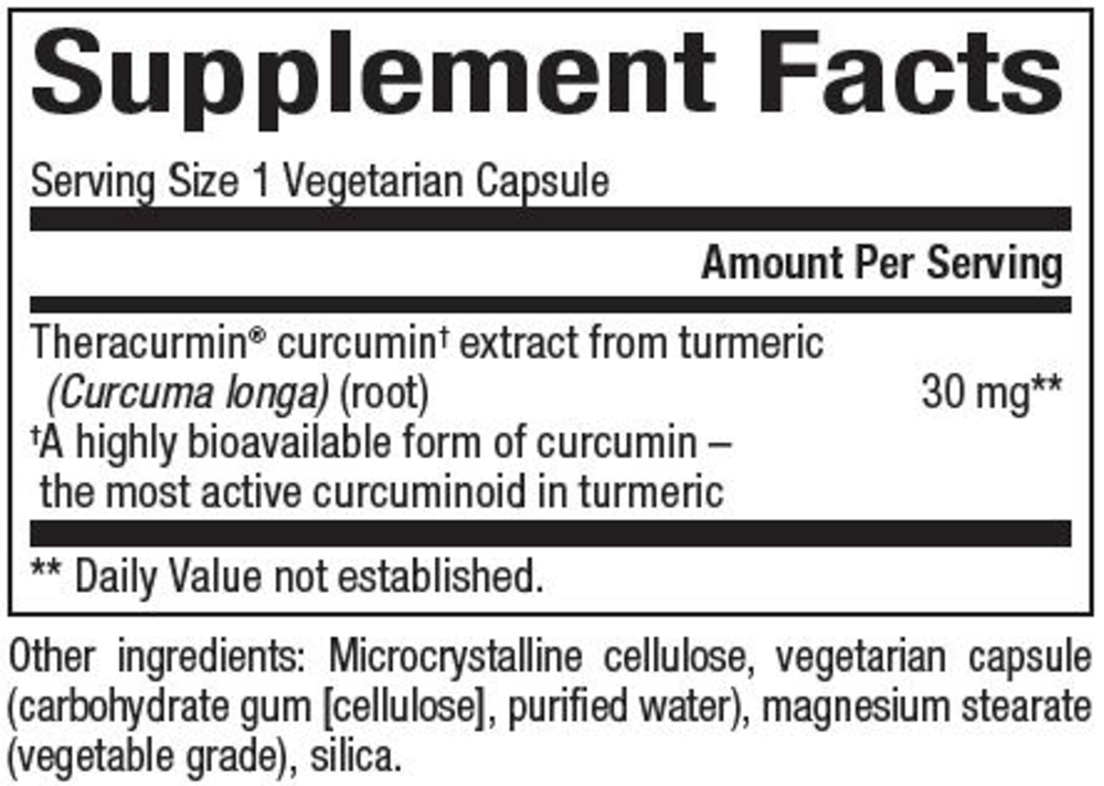 Curcumin is the yellow pigment in turmeric with many valued health benefits, but it is difficult for the body to absorb. Theracurmin is a natural curcumin preparation that utilizes advanced techniques to reduce curcumin’s particle size, dramatically increasing its solubility and bioavailability. Detailed absorption studies have proven that Theracurmin is the best-absorbed form of curcumin on the market.*