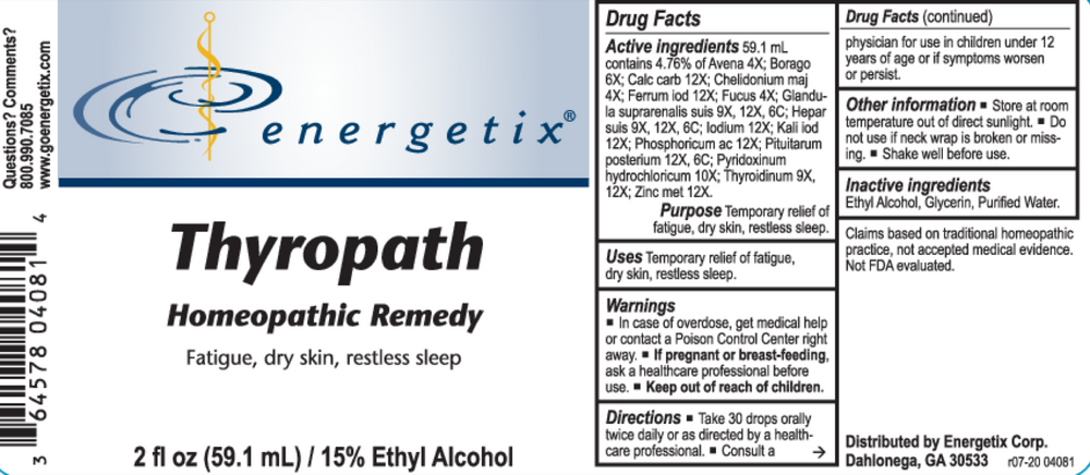Thyropath is a homeopathic combination formula for symptoms of thyroid weakness.‡ The thyroid gland is central to metabolism and is vulnerable to many of the effects of modern life including stress, dietary deficiencies, medication, and environmental toxins. Included in the formula are homeopathically-prepared iodine, sea kelp, vitamin B6, and sarcode remedies from healthy tissues.