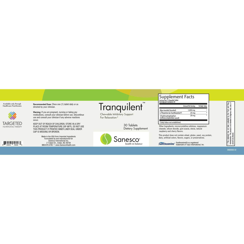 Tranquilent™ includes ingredients that support the action of inhibitory neurotransmitters.* 5-HTP supports serotonin synthesis.* Myo-inositol works to support serotonergic receptors.* Theanine, as Suntheanine®, supports both the release of GABA and its function.*