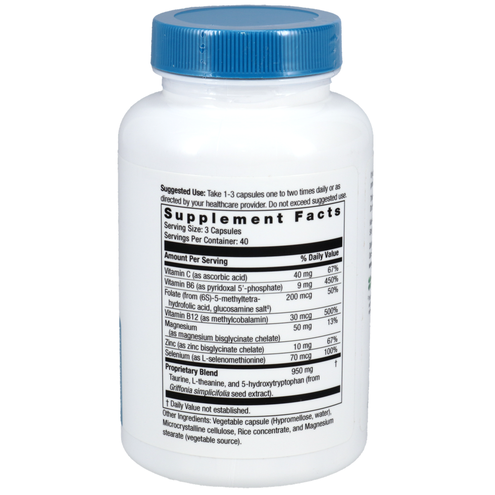 Taurine, L- theanine, and 5-hydroxytryptophan (from Griffonia simplicifolia seed extract)