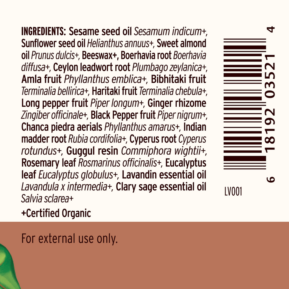Trim Balm delivers kapha-reducing herbs directly through the skin, targeting areas of stagnation and accumulated natural toxins. In a base of sesame, sunflower and almond oils, this invigorating blend is the perfect complement to your healthy weight management routine.-Free from petroleum, parabens, and pthalates