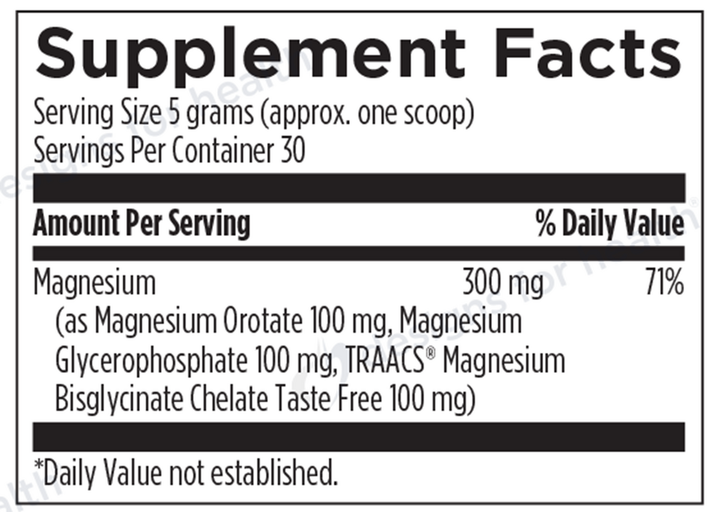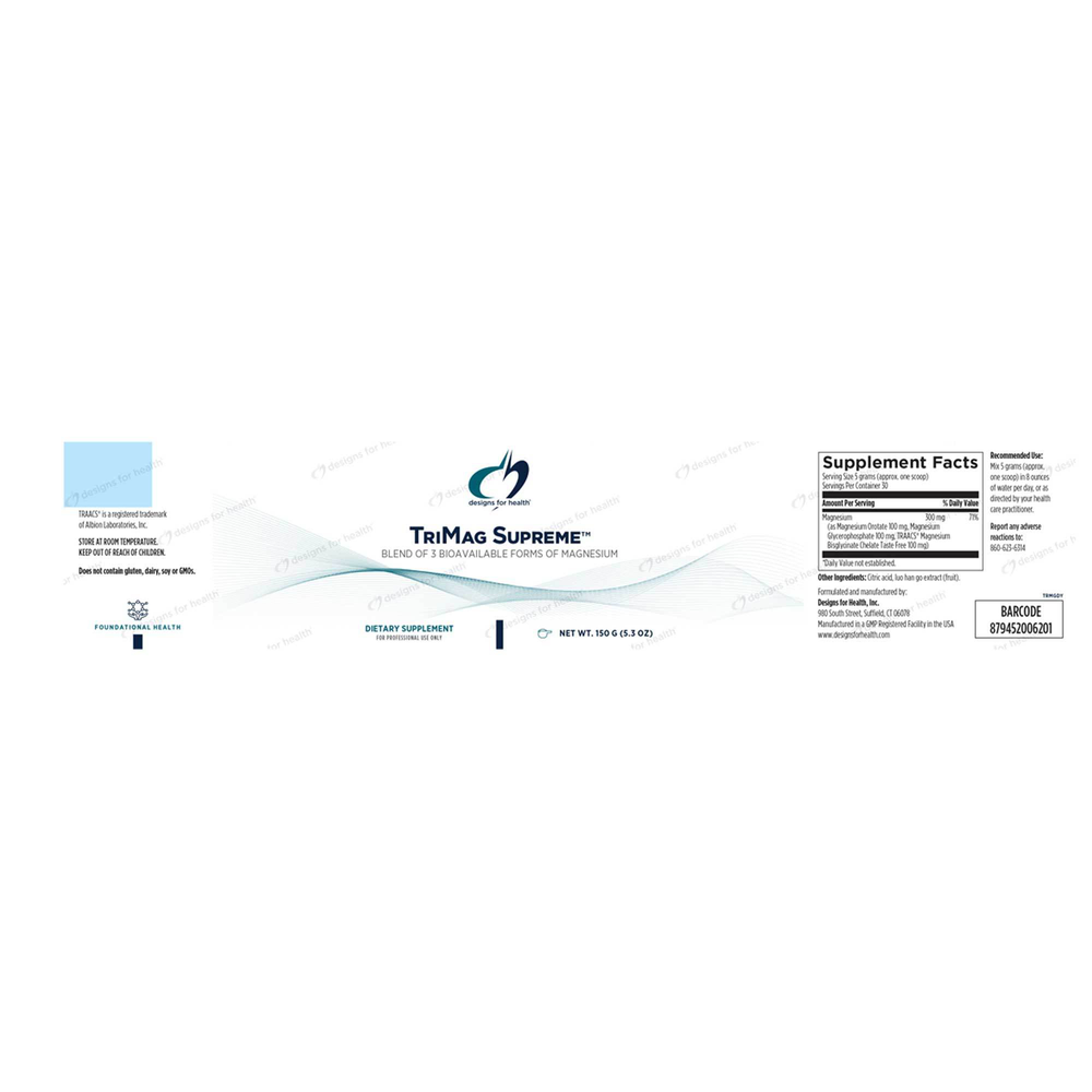 TriMag Supreme™ is a unique blend of three highly absorbable forms of magnesium designed to support cardiovascular health. One serving provides 300 mg of elemental magnesium in an easy-to-mix powder. This product contains three forms of magnesium that may support energy production, heart health, blood vessel function, and healthy blood glucose metabolism.*