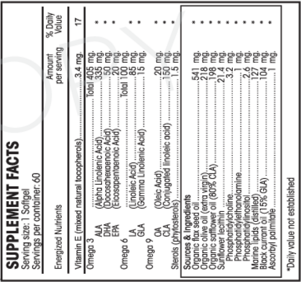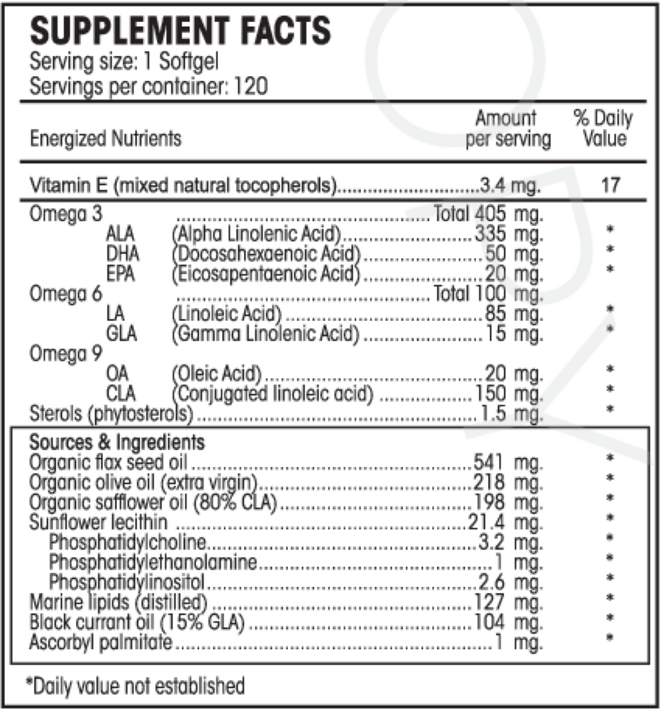 Results: Synergistic combo of required Omega 3,6 & 9 fats that help support blood vessels to help support the heart and brain.