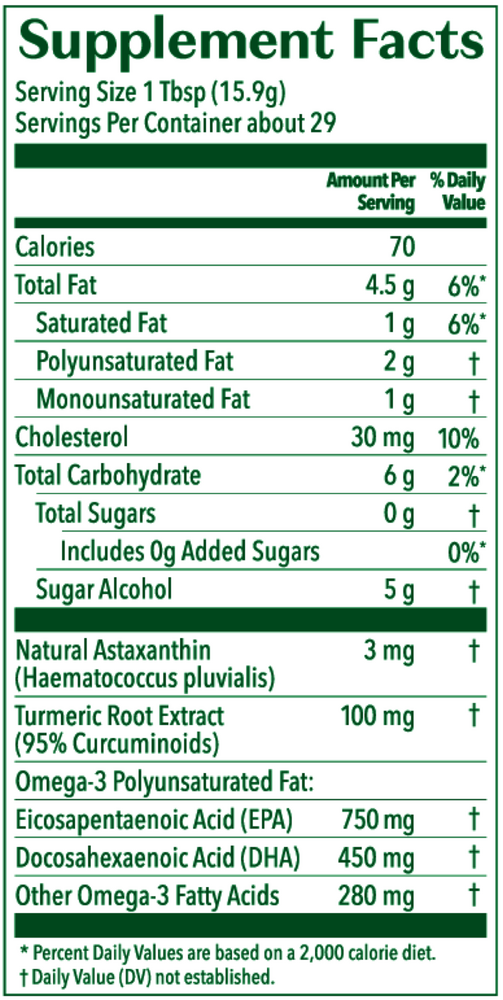 The essential fatty acids EPA and DHA are well known for supporting a healthy heart, and many studies have associated benefits to our eyes, skin, and even our brains. Now, researchers have linked increased omega-3 intake with higher bone density.Triple Power helps patients incorporate omega-3s into their bone-building regimen. Each tablespoon delivers 1,200 mg of pharmaceutical-grade EPA and DHA essential fatty acids in their natural triglyceride form. Regular use helps restores a healthier fatty acid balance, which is critical as our modern diet has replaced many omega-3 sources with omega-6 fats.Triple Power also delivers clinical doses of curcumin to modulate cytokine balance and astaxanthin to address oxidative stress. These powerful antioxidants also prevent oxidation of the fish oil, so it remains fresh without artificial preservatives.The result is a delicious mango-flavored liquid, sweetened with natural xylitol, that your patients will enjoy taking. Plus, a proprietary emulsification process allows for 300% better absorption than traditional oil or softgels.