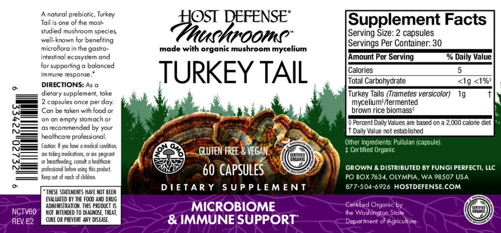 • In a recent clinical study, Host Defense’s Turkey Tail was shown to be immunologically active*Predominant in woodlands throughout the world, Turkey Tail (Trametes versicolor) is one of the best-documented mushrooms in scientific research. With a wide spectrum of beneficial properties, Turkey Tail shows much promise in supporting the immune system with its protein-bound and unique polysaccharides.*