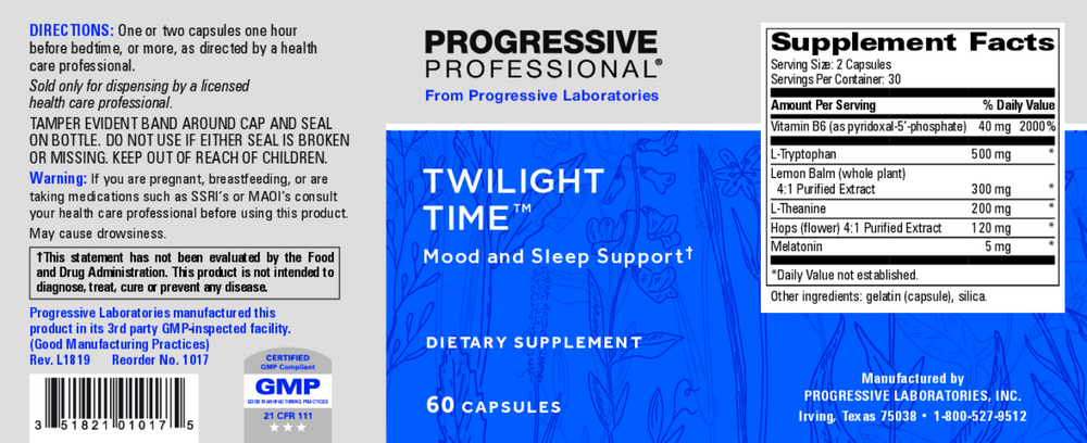 Twilight Time™ is a blend of nutrients that, when taken before bedtime, may provide nutritional support for restful sleep and positive mood.*