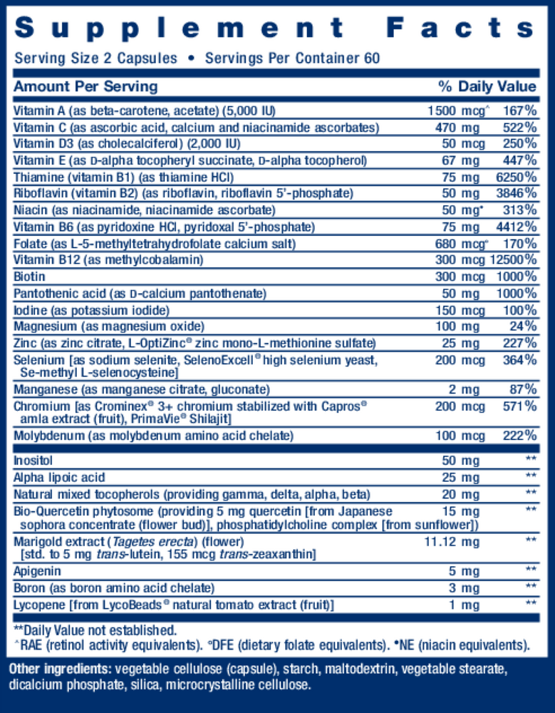 Other Ingredients: vegetable cellulose (capsule), dicalcium phosphate, food starch-modified, silica, vegetable stearate, microcrystalline cellulose, maltodextrin, sunflower lecithin, sunflower oil.