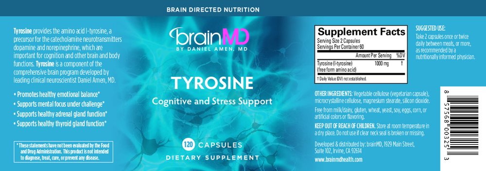 Tyrosine is a component of the comprehensive brain program developed by leading clinical neuroscientist Daniel Amen, MD.• Promotes healthy emotional balance*