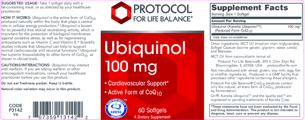Ubiquinol is the active form of CoQ10 produced naturally within the body that plays a central role in cellular energy production.* Ubiquinol is known for its powerful free radical neutralizing activity, which is important for the protection of biological membranes against oxidative stress, as well as for regenerating other antioxidants such as Vitamin C and Vitamin E.*