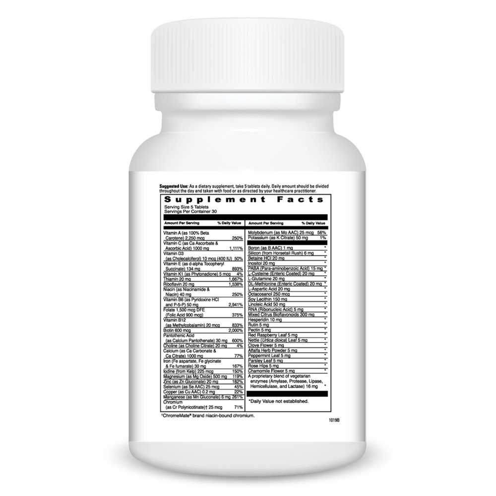 A vegetarian multiple vitamin/mineral supplement containing 58 nutrients for pregnant and nursing mothers.* One of the highest quality prenatal multiples available. Ultimate Prenatal™ places special emphasis to the form, balance, and potency of each nutrient especially required during the prenatal period including calcium, folic acid, B6, B12, biotin, iron and copper. It also contains many additional nutrients and beneficial herbs such as red raspberry, nettle, clove, alfalfa, mint, parsley, rose and chamomile to support digestion and a feeling of wellness in the morning.* Vitamin A in Ultimate Prenatal™ is 100%beta carotene, not preformed Vitamin A.