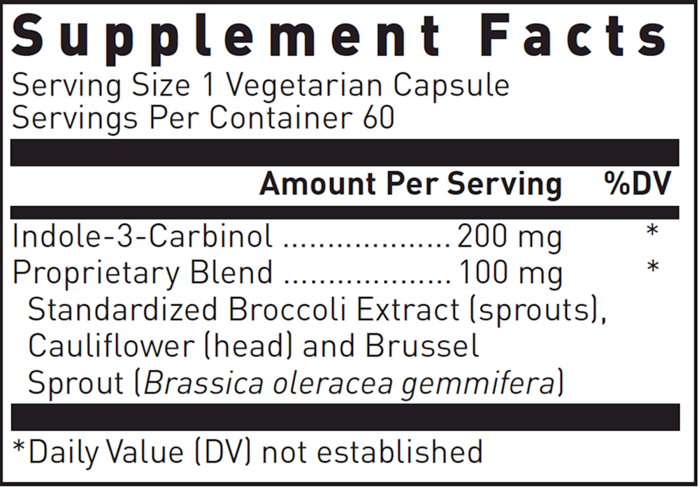 Ultra I-3-C supplies indole-3-carbinol (I-3-C) in a proprietary blend of cruciferous vegetables for estrogen balance.*