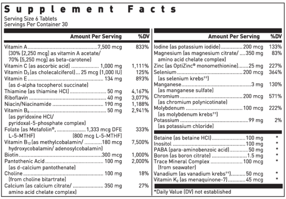 Other Ingredients: Microcrystalline cellulose, hydroxypropyl cellulose, croscarmellose sodium, tablet coating (hypromellose, glycerin), ascorbyl palmitate, and silica