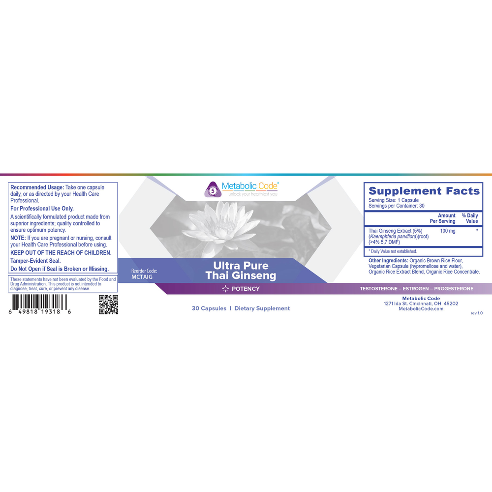Thai ginseng (Kaempferia parviflora) root is a unique SE Asian botanical that is used for antioxidant support. Thai ginseng contains a powerful antioxidant compound called 5,7-dimethoxyflavone, that helps to support metabolism and healthy through support cellular energy production, blood sugar metabolism/insulin function and weight management, physical performance, and neurological/cognitive support. Thai ginseng has SIRT-1 upregulation activity that is 4-5x stronger than resveratrol. Thai ginseng is used for TRIAD 1*