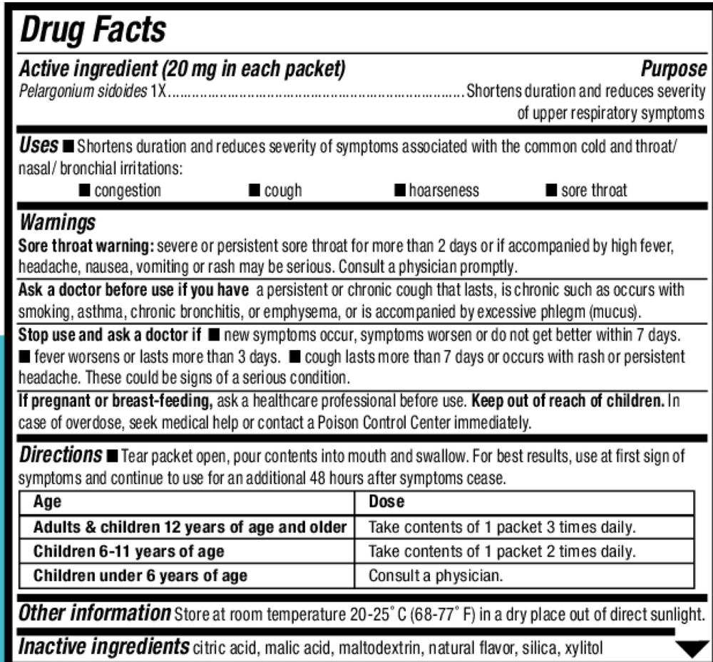 Pelargonium sidoides 1X helps reduce the severity of your cold by relieving the symptoms associated with the common cold including congestion, cough, sore throat and hoarseness, plus nasal, throat and bronchial irritations.
