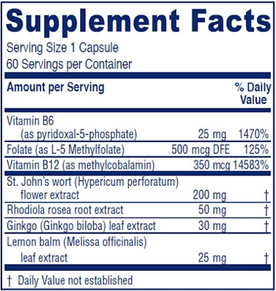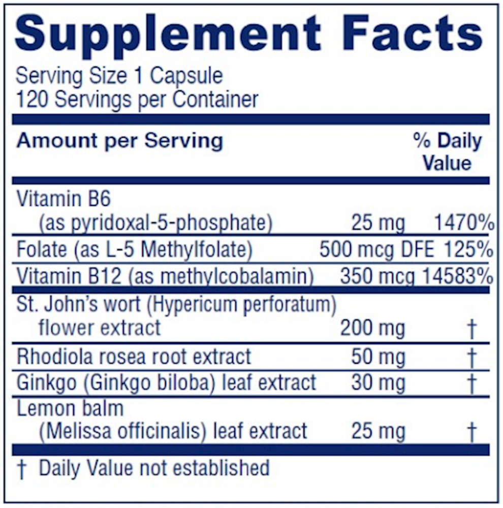 • Research has indicated certain nutrients for maintenance of a positive mood: Vitamin B6, Vitamin B12 & Methylated Folic acid (as L-5-MTHF)*