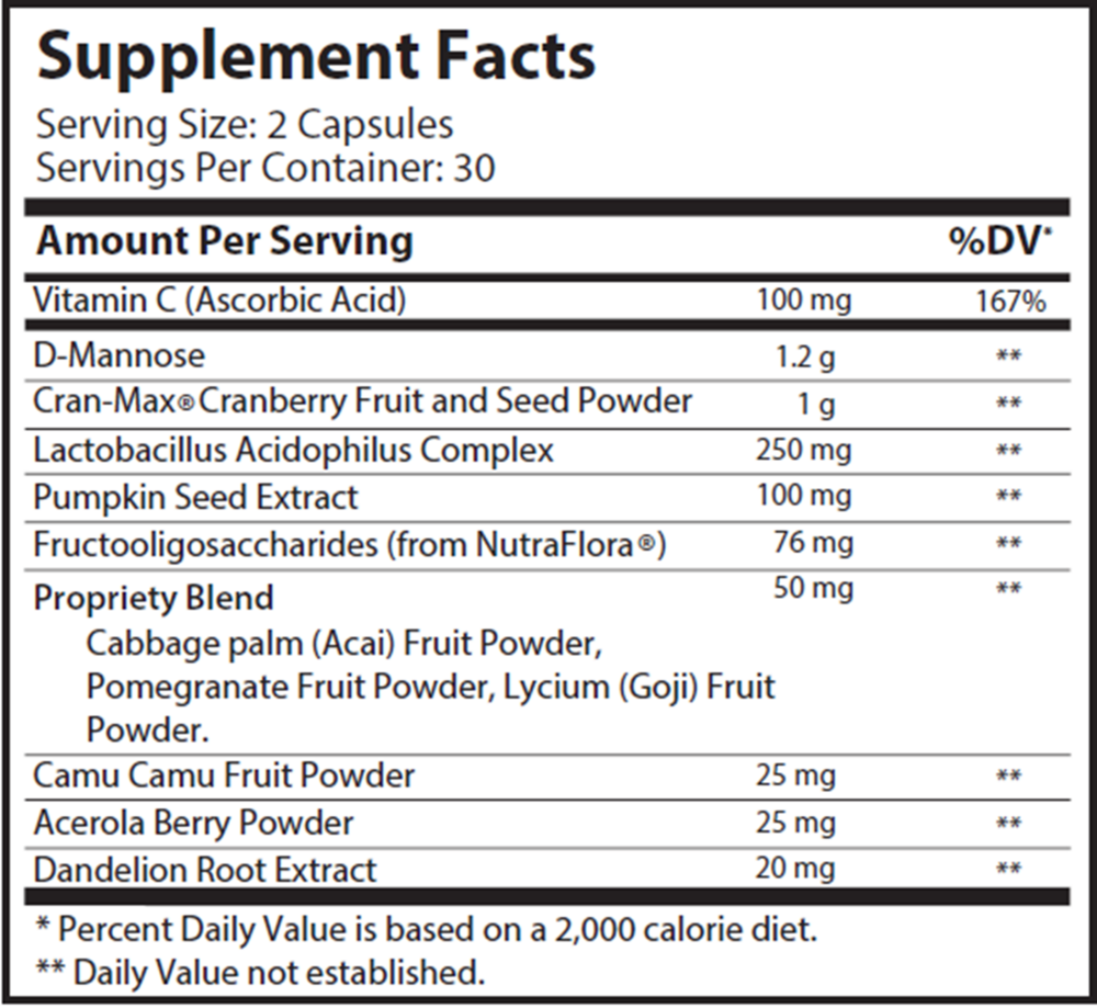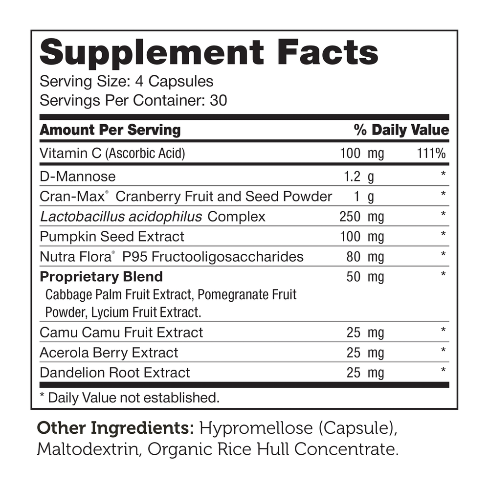 • Contains D-Mannose, Cranberries, Probiotics and more