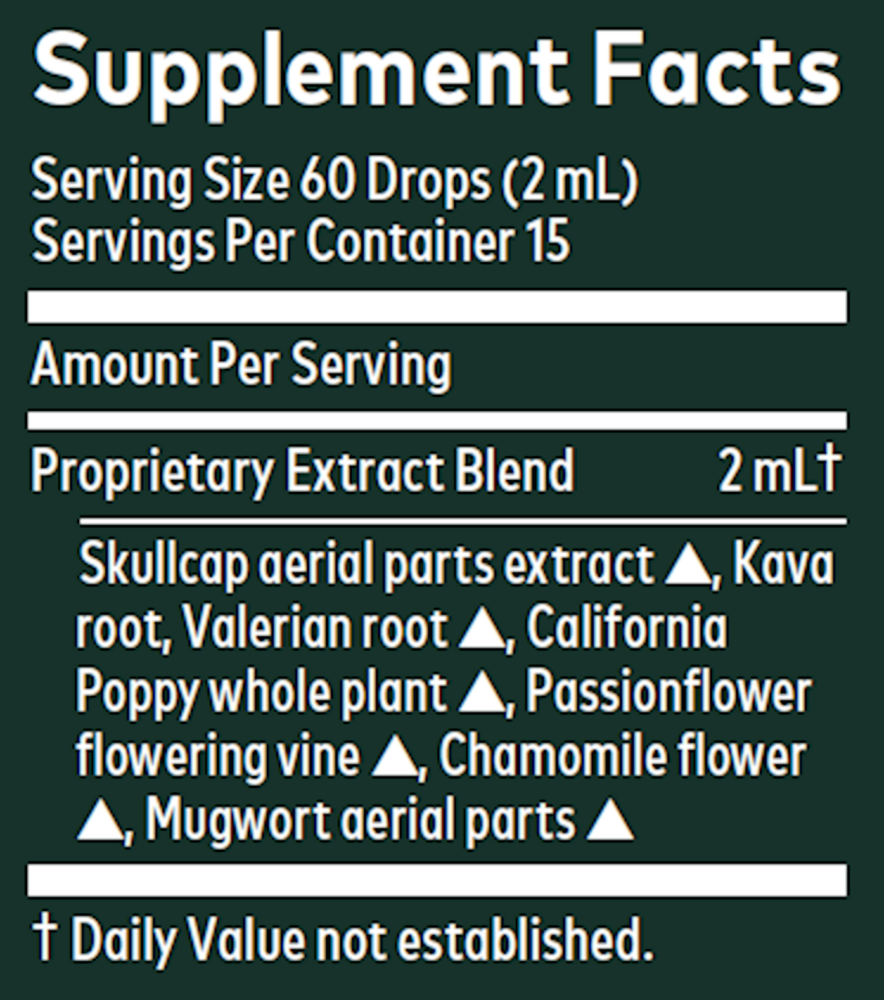Caution: US FDA advises that a potential risk of rare, but severe, liver injury may be associated with kava-containing dietary supplements. Ask a healthcare professional before use if you have or have had liver problems, frequently use alcoholic beverages, or are taking any medication. Stop use and see a doctor if you develop symptoms that may signal liver problems, including jaundice (yellowing of the skin or whites of the eyes) and brown urine. Other nonspecific symptoms can include nausea, vomiting, light-colored stools, unexplained tiredness, weakness, stomach or abdominal pain, and loss of appetite. Not for use by persons under 18 years of age, or by pregnant or breastfeeding women. Not for use with alcoholic beverages. Excessive use, or use with products that cause drowsiness, may impair your ability to operate a vehicle or heavy equipment. Use only as directed on label.