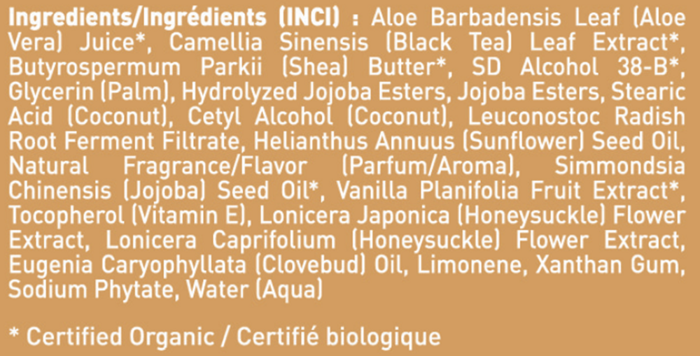 Uplifting hand and body lotion formulated with Organic Vanilla, Black Tea and Shea Butter. Softens skin and invigorates the senses.