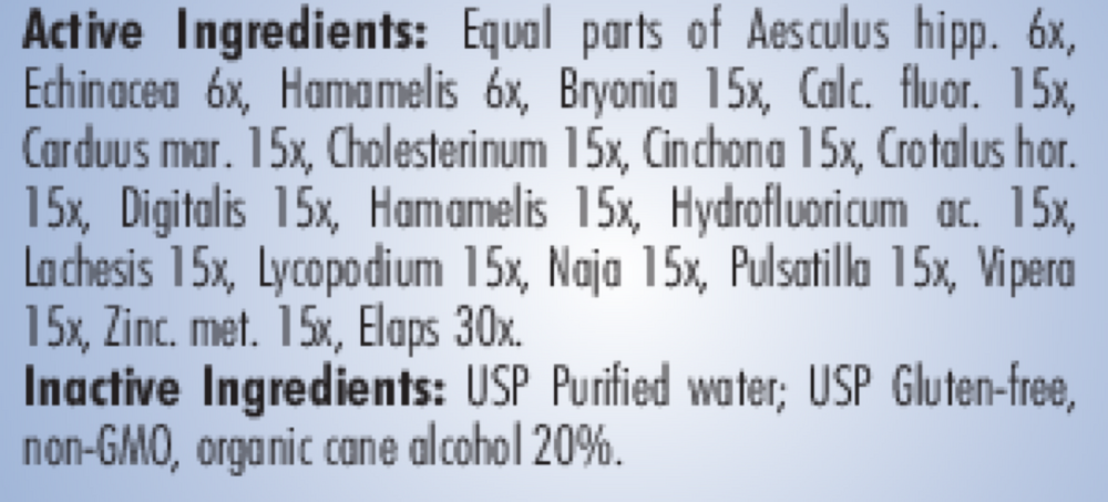Homeopathic. Formulated for symptoms such as swelling, discoloration, aching and heaviness in legs.†