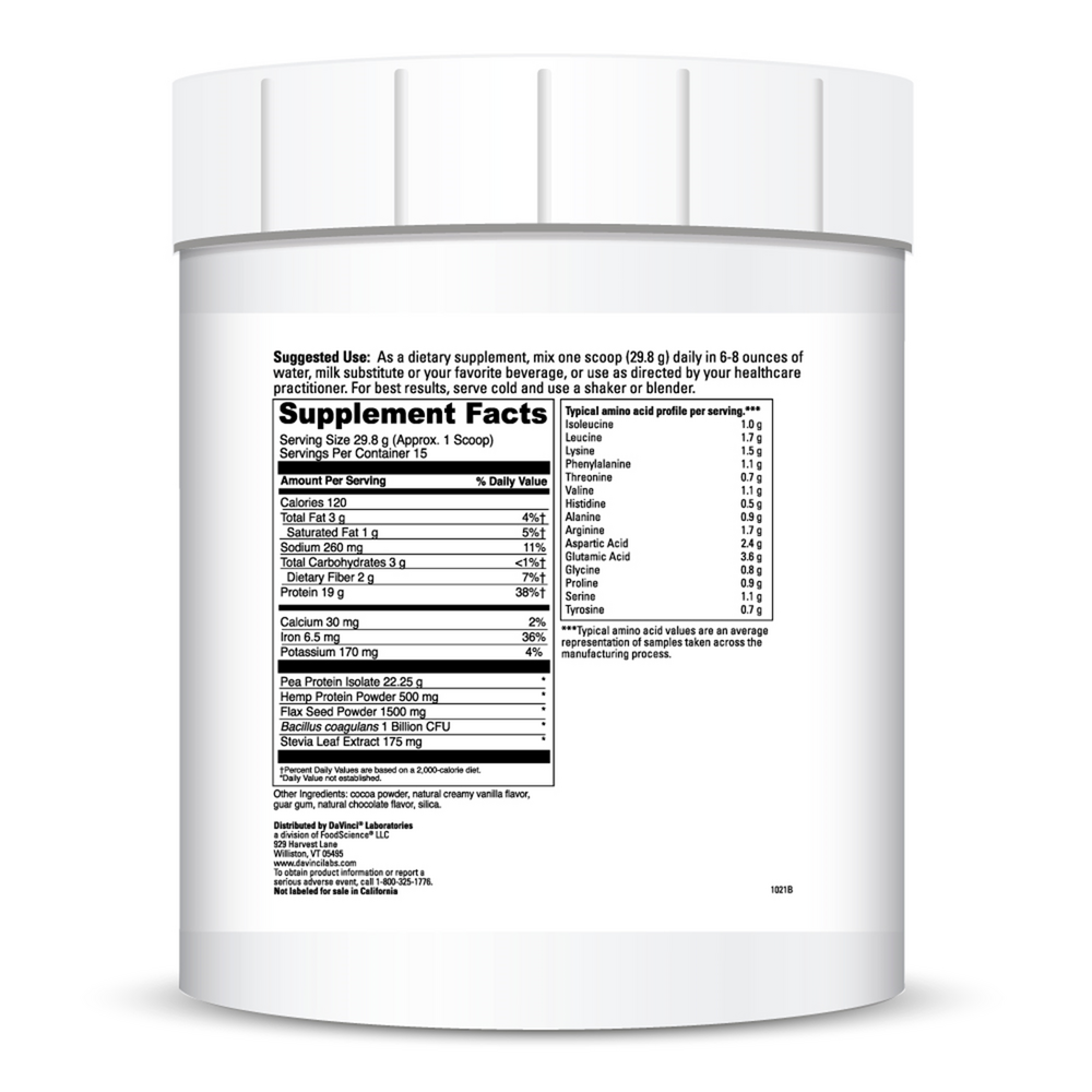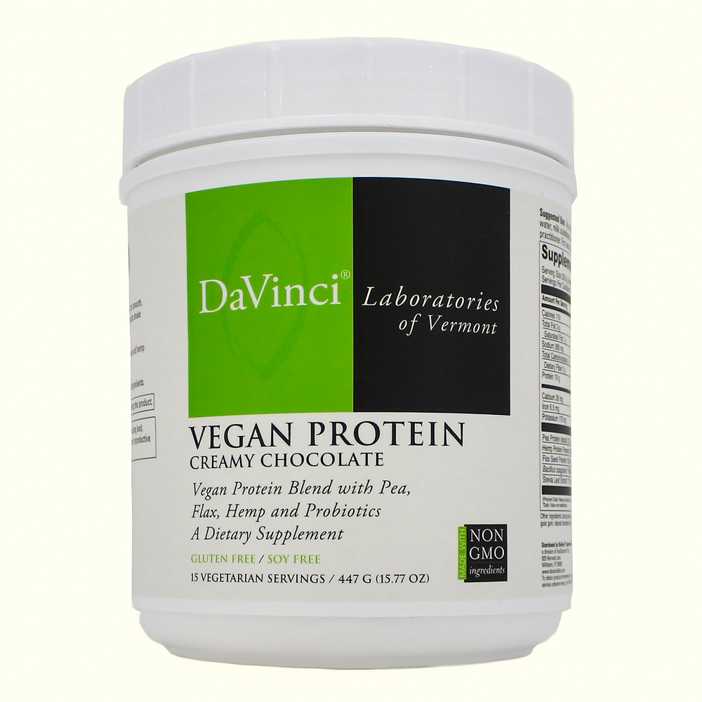 Vegan Protein is comprised of a natural Pea Protein Isolate lending a high level of nourishment along with clinical functionality for a broad range of applications. The blend of Flax and Hemp lend to the high degree of bioavailability inherent to this formula. This great tasting protein powder is rounded out with a stable probiotic to aid in digestive support.*