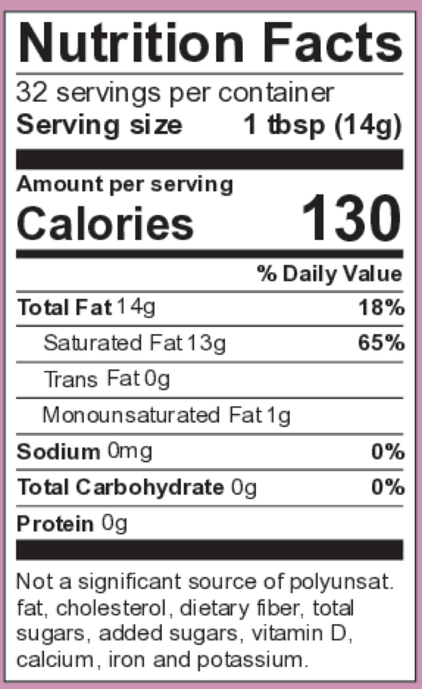 Coconut Oil is ideal to use as a cooking oil because it can take high heat without losing its healthy properties. Most importantly, this non-hydrogenated naturally saturated oil does not contain trans-fatty acids.