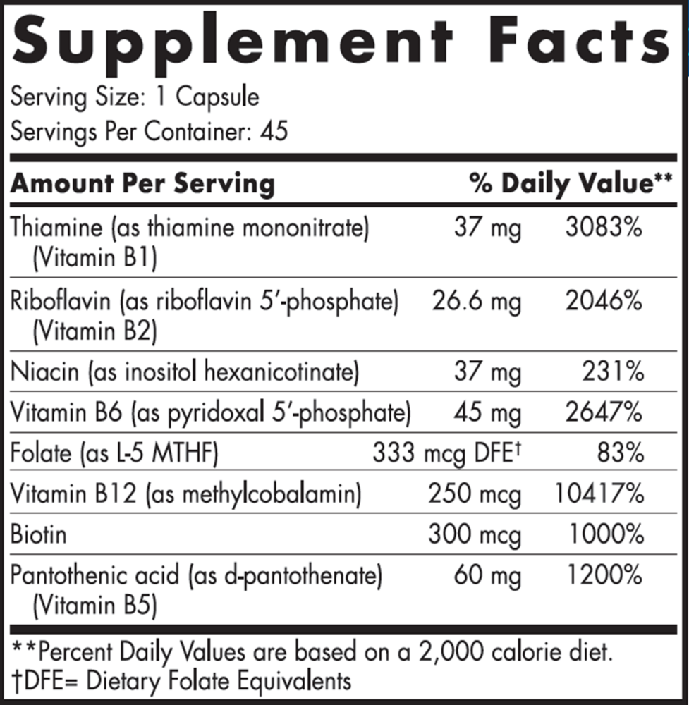 • Full-spectrum B complex with biologically accessible coenzyme forms