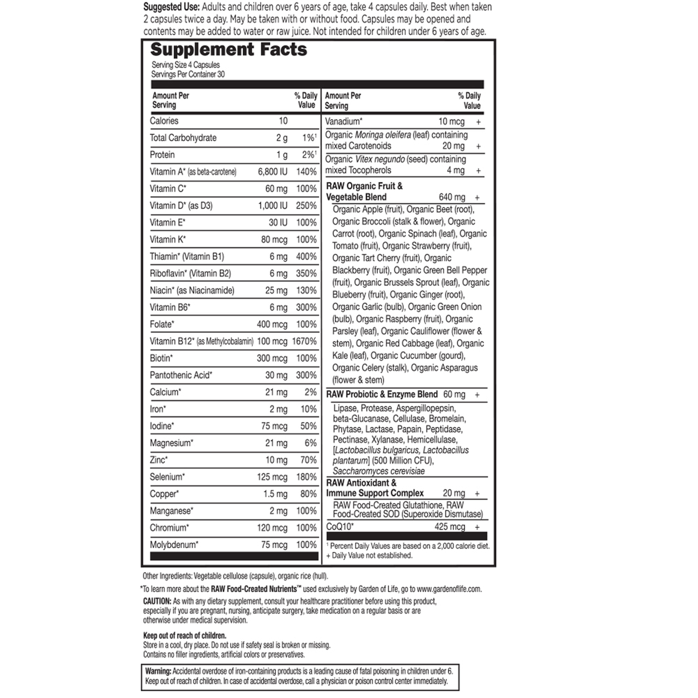 Vitamin Code Family is a comprehensive RAW whole food multi-nutrient formula, specifically formulated to meet the needs of adults, teens and kids age 6 and over, providing the nourishment the body craves to support optimal health and well-being.* 23 fruits and vegetables add supporting antioxidants, vitamins and nutrient cofactors. RAW means no high heat, synthetic binders, fillers, artificial flavors, sweeteners, colors or additives commonly used in tablets. Whole food means RAW Food-Created Nutrients™ are blended in a base of 23 fruits and vegetables together with food cofactors.
