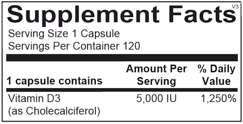 The Vitamin D formula is delivered as D3 (cholecalciferol) for optimal use by the body, and is available in 1,000 and 5,000 IU capsules to meet a variety of individual needs.