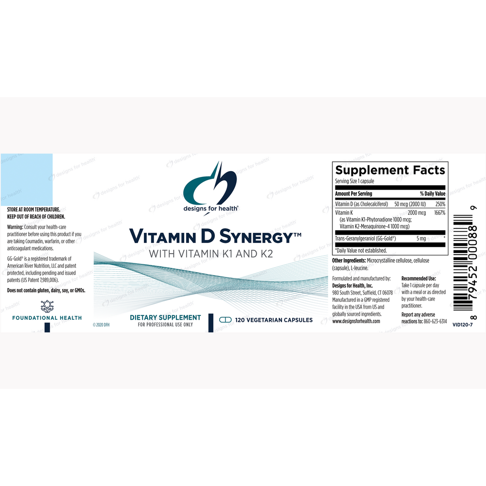 Vitamin D Synergy™ provides clinically useful amounts of vitamin D3 and vitamin K (both K1 and K2 [as MK-4]), along with geranylgeraniol (GG), a substance produced naturally in the body, to promote optimal bone and arterial health and to maintain the immune system in proper balance. This formula may be ideal for those looking to maintain optimal vitamin D status in the body. It can be replaced with Vitamin D Supreme when higher targeted levels of vitamins D and K are desired. Vitamins D and K work synergistically, thus, increasing vitamin D increases the need for vitamin K.