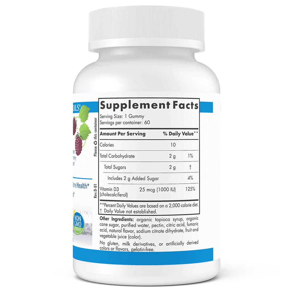 Nordic Naturals Vitamin D3 Gummies provide 1000 I.U. of vitamin D in each serving. In delicious wild berry flavor to help support compliance, these great-tasting vitamins are made from cholecalciferol, the natural form of vitamin D, preferred for optimal absorption.*