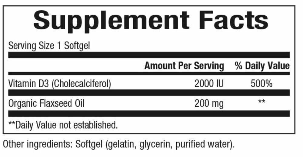 2000 IU vitamin D per softgel allows for easy daily dosing.