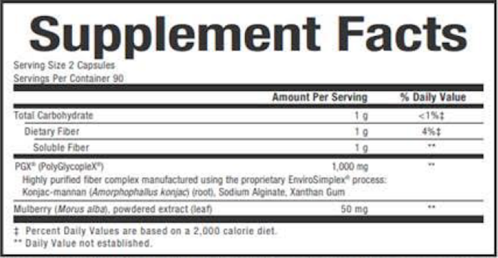 The combination of PGX® and mulberry extract helps lower the glycemic index of your meals, slow glucose absorption and promote healthy blood sugar levels already in normal range.* Incorporating PGX® into your daily diet will help promote satiety, curb food cravings and normalize appetite and metabolism.*